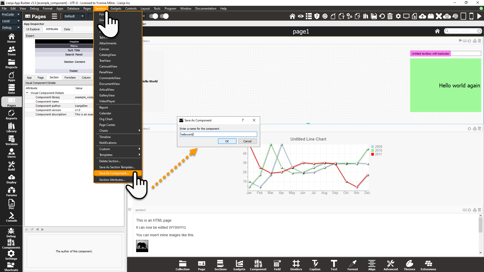 To save a WebView/WebView based Section as a Visual Component, make sure the Section is selected, then click the Sections -> Save As Component... menu option.