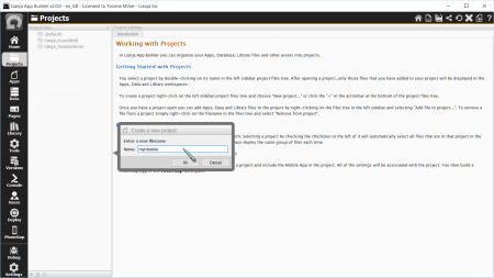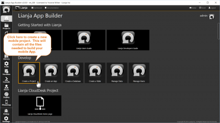 Start the Lianja App Builder and create a new Mobile Project by clicking the Create Project tile in the Home workspace.