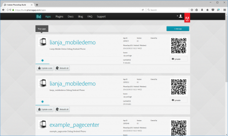 - After a successful build using the Adobe PhoneGap Build service, login to your PhoneGap Build account and select Apps. You will see the Apps that you have built along with a QR-Code to the right of them.