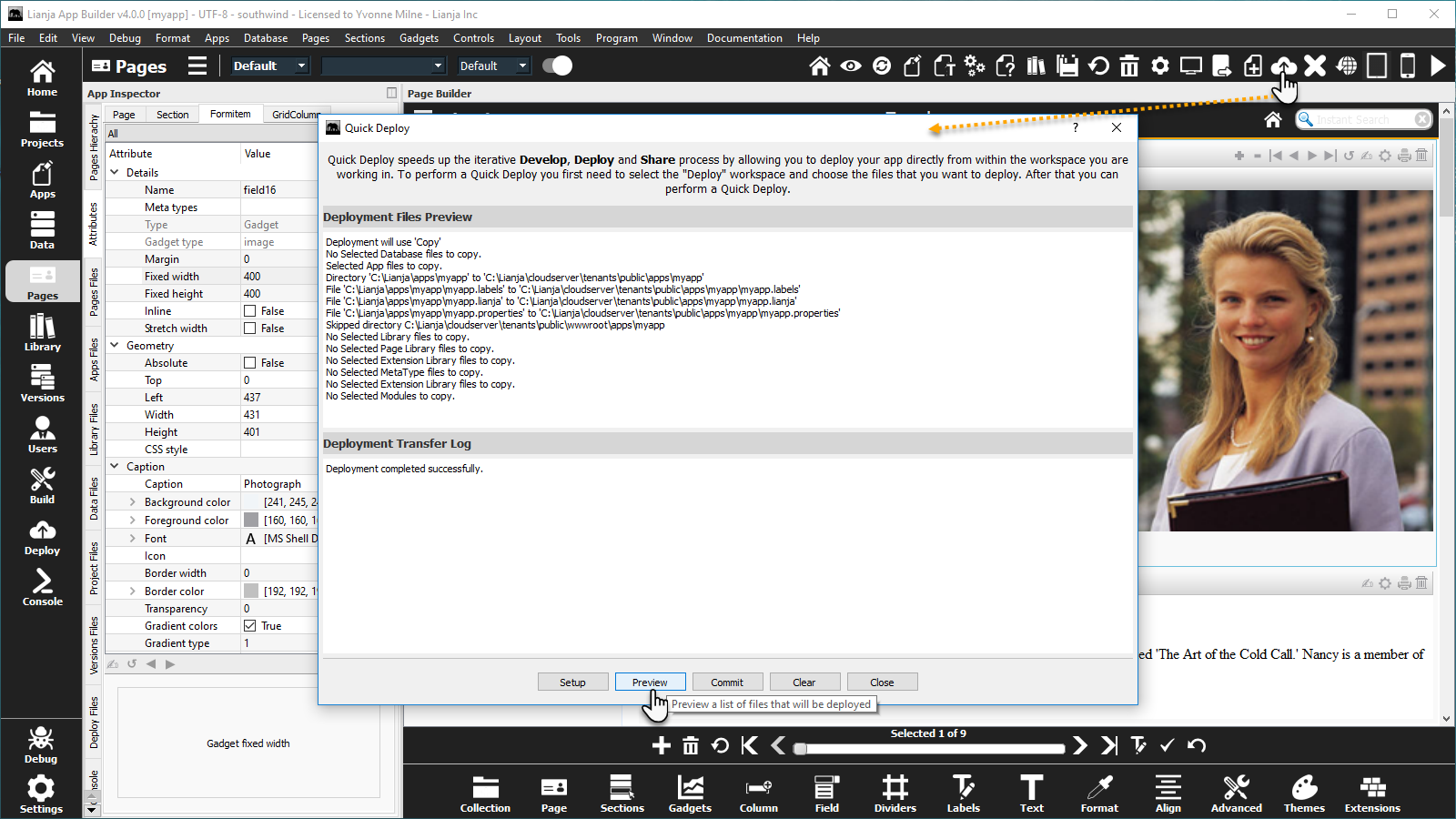 Haga clic en Quick Deploy de nuevo y haga clic en Preview para ver los archivos que se implementarán.