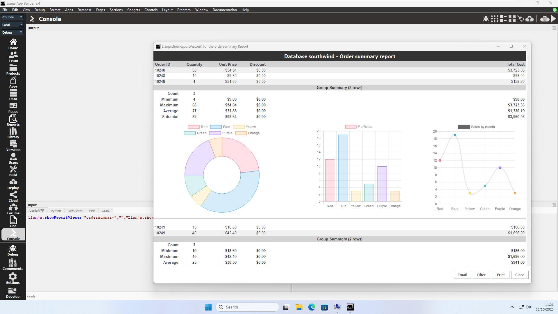 Clicking the 'Print' opens the report in the system default PDF viewer allowing the report to be printed.